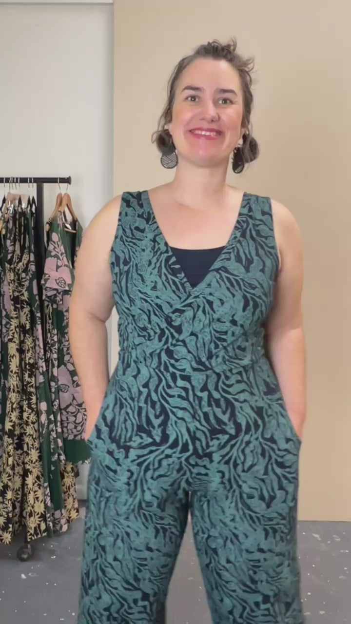 Pull On Stretch Jumpsuit - Kelp Garden
