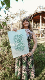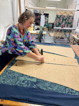 Organic stretch cotton screen-printed by hand in Melbourne. Cut and sewn by Clare in Lismore, NSW
