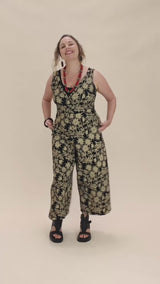 Pull On Stretch Jumpsuit - Straw Flannel Flower