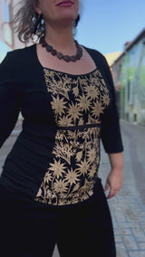 Windowpane Top 3/4 Sleeve - Straw Flannel Flower