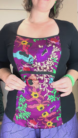 Our bestselling top style, the Windowpane Top in Storyline prints combines a sleek, square neckline with a statement front panel.