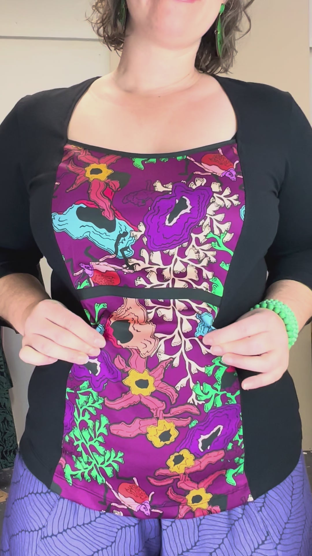 Statement, fitted organic cotton panel top, with sub-tropical flora print